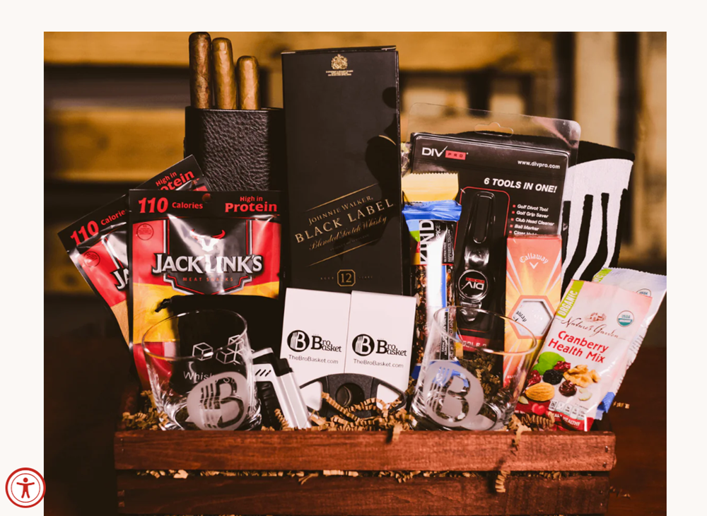 BroBasket Includes: Johnnie Walker Black Label 750ml Marich Milk Chocolate English Toffee Caramels Ghirardelli Milk Chocolate Bar 180 Snacks Variety Pack Jack Links Beef Jerky Div Pro Golf Balls 3pc Golf Tee Set Golf Towel Cigar Cutter Cigar Lighter - Fluid Not Included Cuban Reject Toro Natural Cigar 3PC Leather Cigar Case BroBasket Coaster